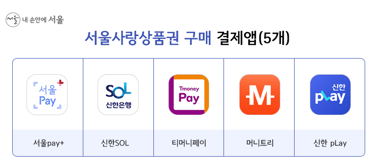 상품권 구매는 서울페이플러스에서 포함한 5개 앱을 통해서 구매가 1인당 월 50만 원까지 가능합니다. 보유한도는 1인 100만 원으로 말할 수 있겠습니다. 첫 번째는 서울페이플러스이고 두 번째는 서울 sol이며 세 번째는 티머니페이이고 네 번째는 머니트리이고 다섯 번째 방법으로는 신한플레이에서 다운로드하는 것이 가능합니다. 발행당일인 30일에는 안정적인 시스템 운영을 위해 서울페이플러스 '가맹점 찾기'는 발행 30분 전부터 2시간 동안 오전 9시 30분부터 11시 30분까지, 오후 13시 30분부터 15시 30분까지 그리고 상품권 선물하기는 발행일 오전 10시부터 오후 18시까지 일시 중단을 하였습니다. 또한 잔액이관은 먼저 플레이스토어 안드로이드앱과 앱스토어에서 서울페이플러스앱을 내려받기를 하거나 회원 가입 후 기존 사용 앱 중 하나를 실행해 이관하기 메뉴를 클릭하면 잔액이 한 번에 서울페이플러스앱으로 통합관리가 되며 옮겨지는 방식입니다. 또한 서울시민들이 서울사랑상품권을 구매할 경우에 관련된 상인들은 상품권으로 구매 시에 또 다른 추가 할인 혜택 등도 있으니 상품권을 구매하실 때도 할인을 받고 또 상품권을 사용하실 때에도 할인을 받아서 이중으로 할인받는 일들도 간혹 발생할 수 있습니다.